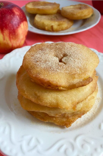 - Dip each apple ring into the batter, coating it evenly. 🍎