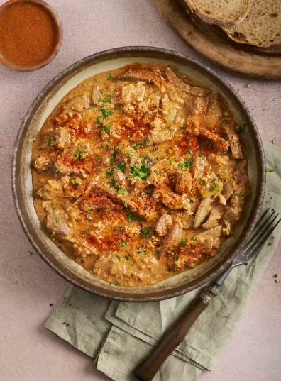 Push onions to the side, add the liver slices. Cook for 3–4 minutes on each side, until browned but still tender inside (don’t overcook or it gets tough).