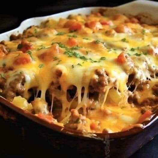 Bake: Cover the baking dish with foil and bake in the preheated oven for 20 minutes. Then, remove the foil and bake for an additional 10-15 minutes, or until the cheese on top is melted and bubbly, with golden-brown edges.