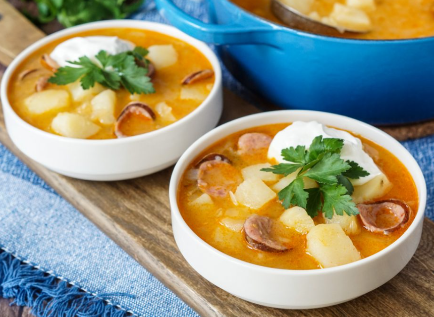 - In a bowl, mix sour cream with a bit of hot soup to temper it, then stir it back into the pot.