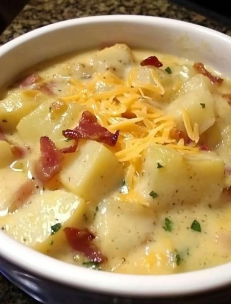 - Add cubed potatoes, milk, and cream. Simmer for 10–15 minutes, stirring occasionally.