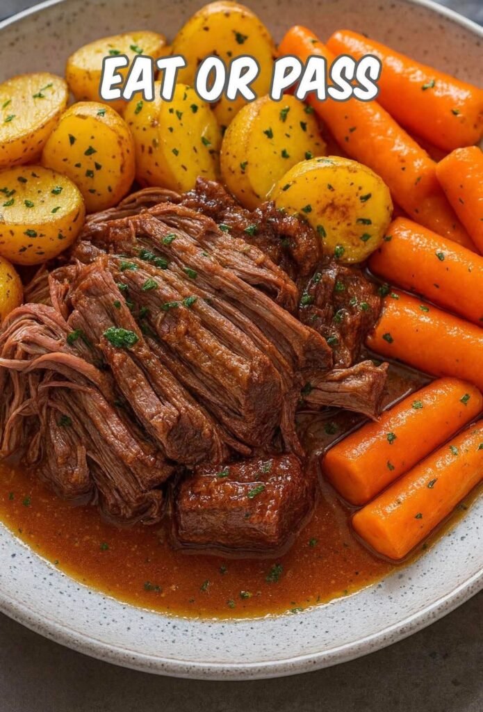 SLOW-COOKED POT ROAST WITH GRAVY OVER