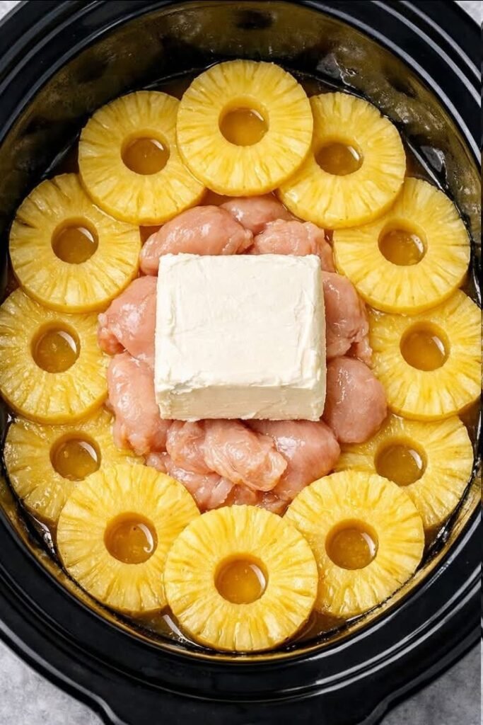 🍍🍗 4-Ingredient Slow Cooker Chicken & Cream Cheese with Pineapple Rings