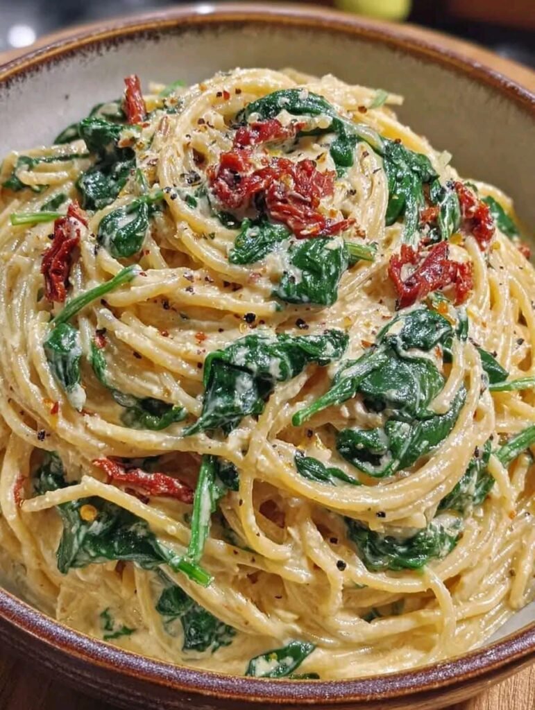 Spaghetti & Spinach with Sun-Dried Tomato Cream Sauce