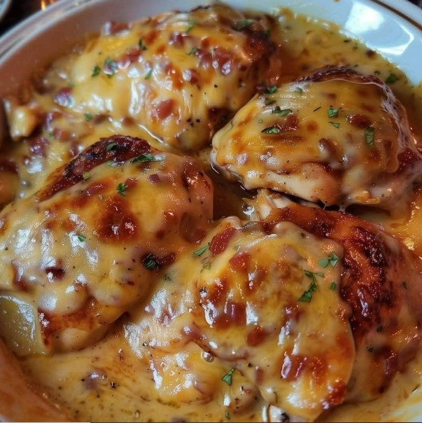 🧀 Cheesy Smothered Chicken Thighs with Bacon