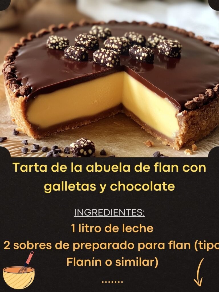 Tarta de la abuela de flan con galletas y chocolate