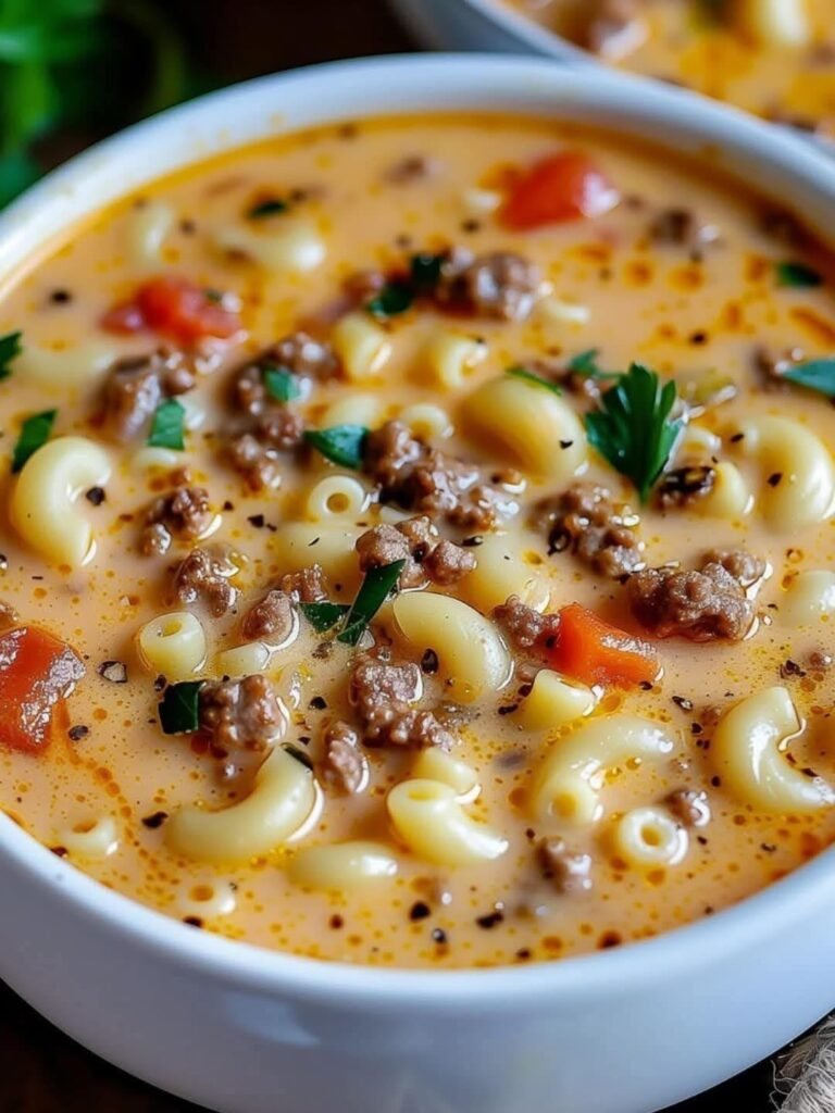 🍔🧀🍲 One-Pot Macaroni Cheeseburger Soup (No Velveeta)