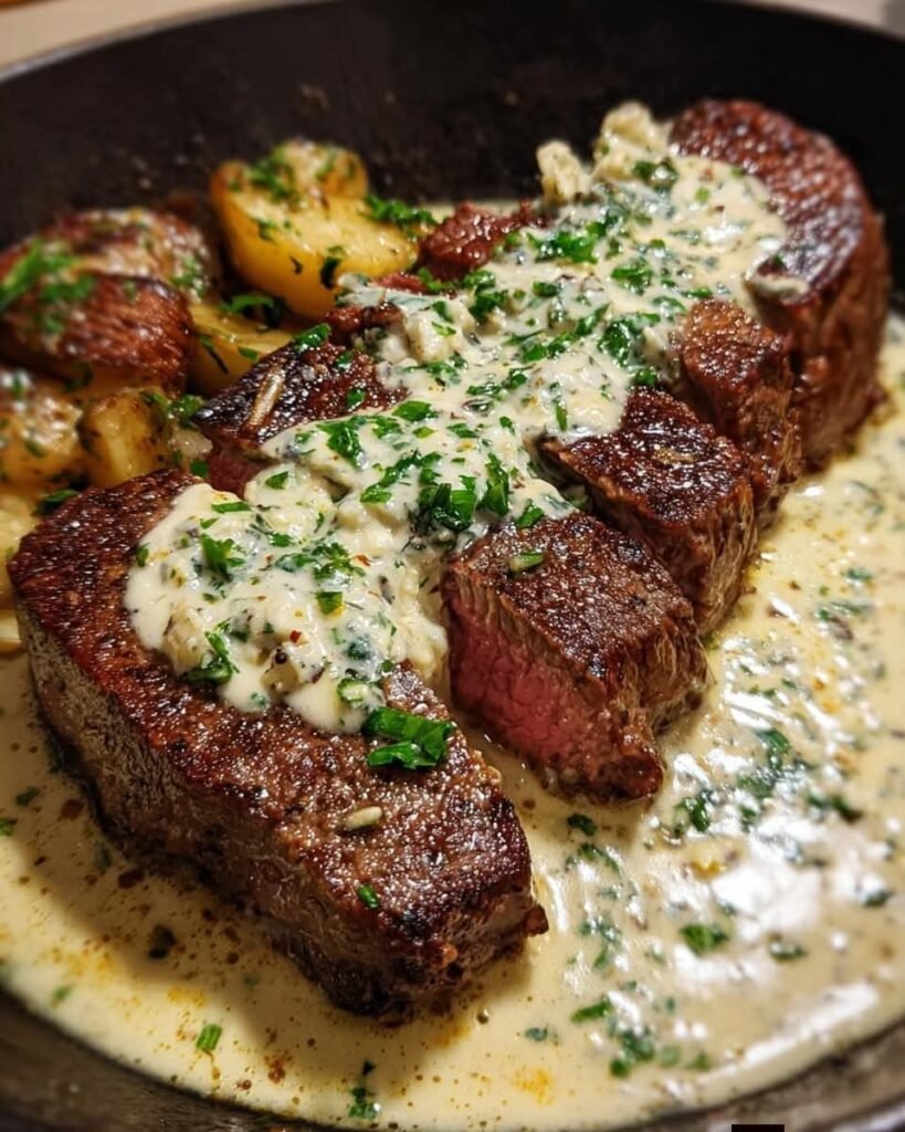 Pan-Seared Steak in Rich Parmesan