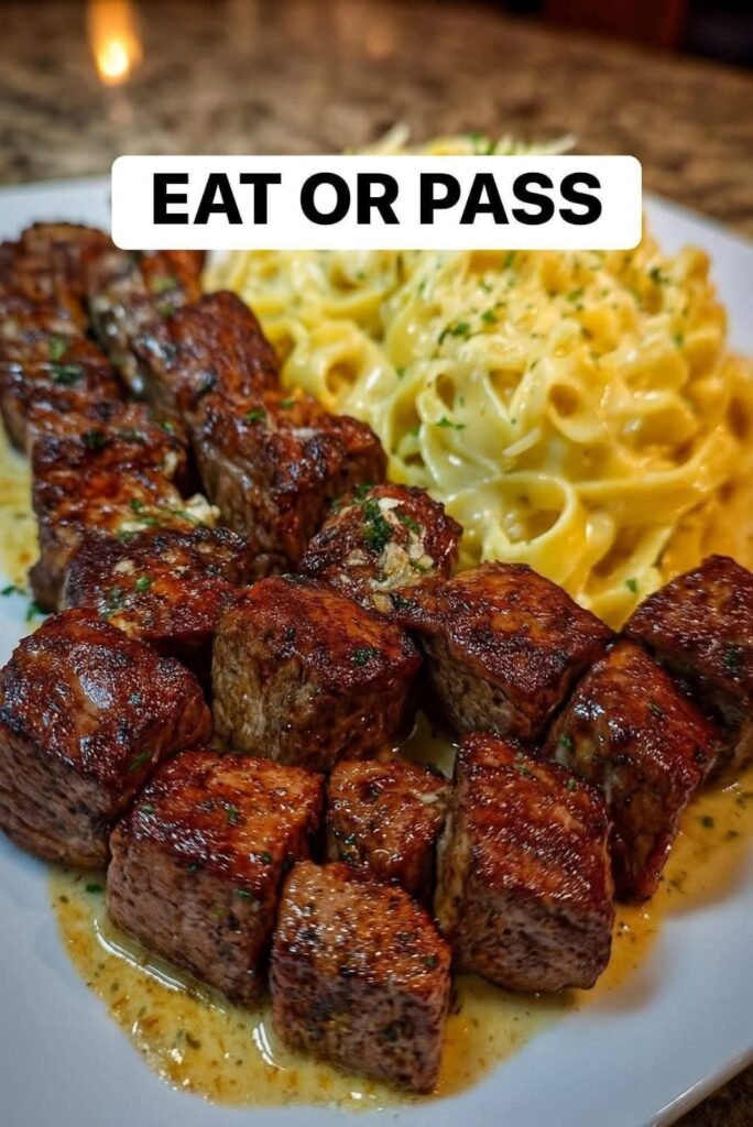 Garlic Butter Steak Bites & Creamy Fettuccine Alfredo