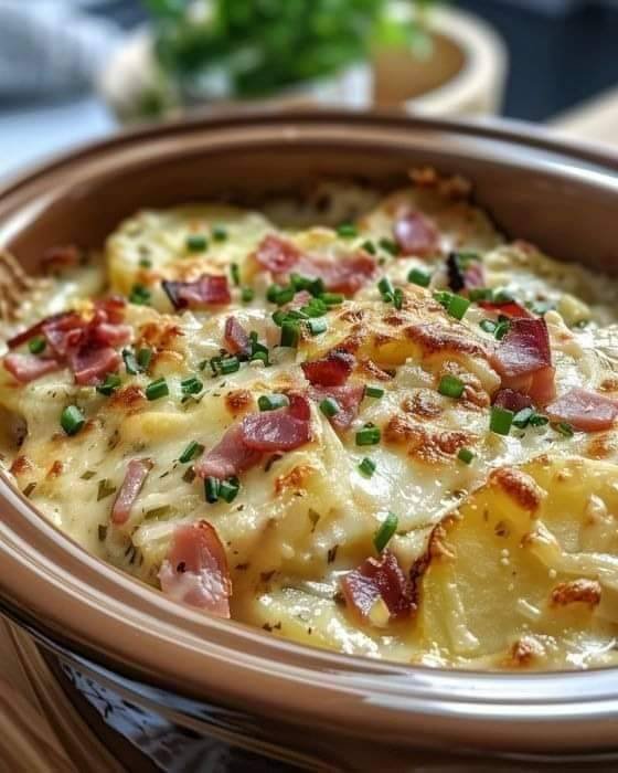 - Cook: Cover and cook on low for 6-7 hours or on high for 3-4 hours, until the potatoes are tender and the cheese is melted and bubbly.